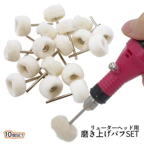 リューター 研磨 バフ 10個入 ルーターバフ フェルトバフ 羊毛 フェルト 3mm軸 ビット 研磨ヘッド 金属磨き 磨く 仕上げ ポリッシャー DIY アクセサリー RUBAF