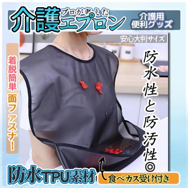 大人用 介護エプロン 防水 よだれかけ 大判サイズ 食べかす対策 食事用エプロン 防水素材 拭くだけキレイ 面ファスナー 簡単着脱 スタイ 防汚 介護 BOSSTAI