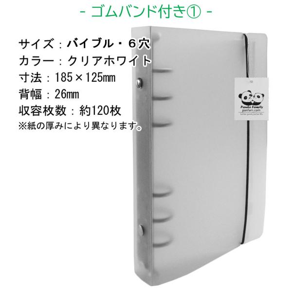 バインダー バイブル 6穴 A5 20穴 B5 26穴 リングバインダー 半透明 金具リング ポリプロピレン ゴムバンド シンプル 無地