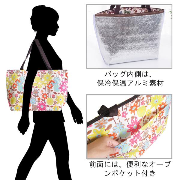 花柄や動物柄など、おしゃれなデザインの保冷トートバッグです。