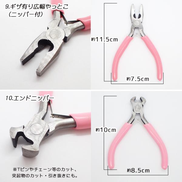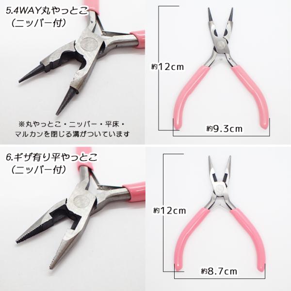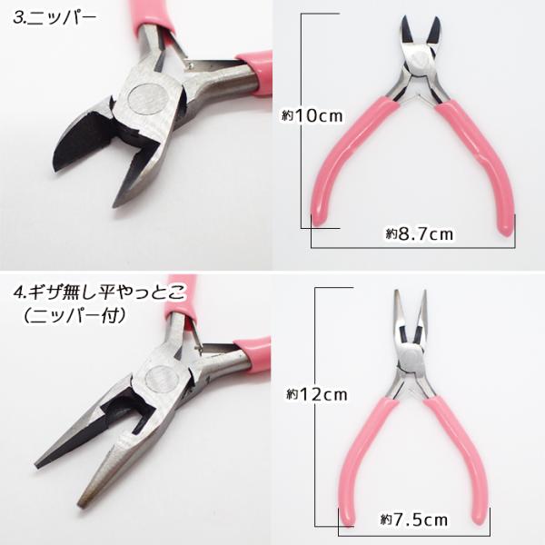 4.アクセサリー用工具 やっとこ ピンク/10種類 平やっとこ 丸やっとこ ニッパー ヤットコ ギザ無し ギザ有り ペンチ クラフト用 ハンドメイド