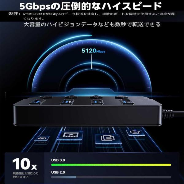 USB ハブ スイッチ付き 3.0 USBハブ USB3.0 4ポート