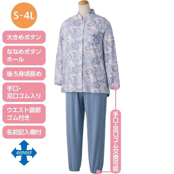 介護 大きめボタン のびのび ストレッチ パジャマ 婦人 シニア 女性 介護パジャマ 通年用 800455