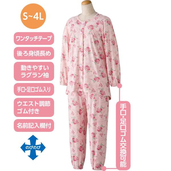 介護 のびのび ストレッチ パジャマ 婦人 ワンタッチテープ シニア 女性 介護パジャマ 通年用 800341
