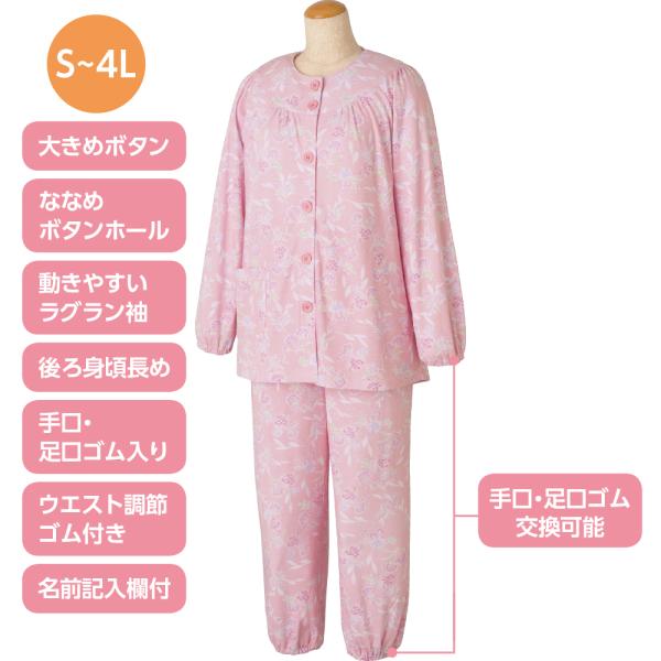 介護 のびのびストレッチ ホックパジャマ 婦人 パジャマ シニア 女性用 レディース 通年用 800454