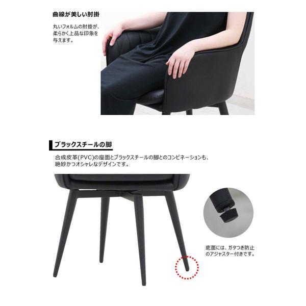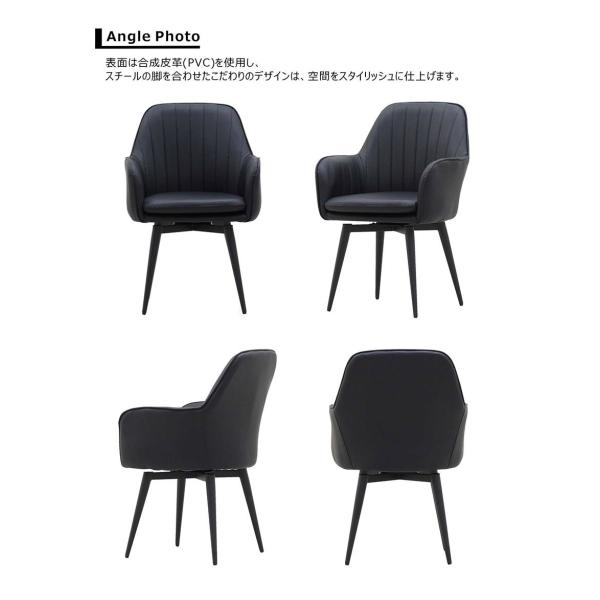 ダイニングチェア 回転 肘付き 2脚セット 合皮 スチール