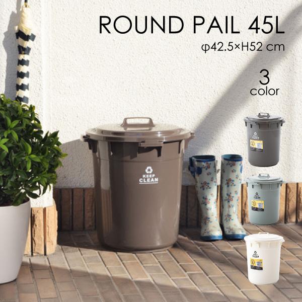 ゴミ箱 45L LFS-765BR LFS-765GR LFS-765WH ラウンドペール 丸型 フタ付き ロック機能付き 丸洗い おしゃれ 分別