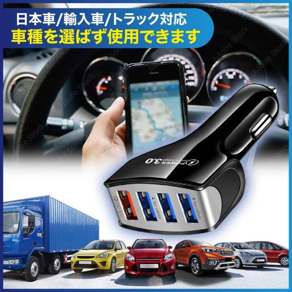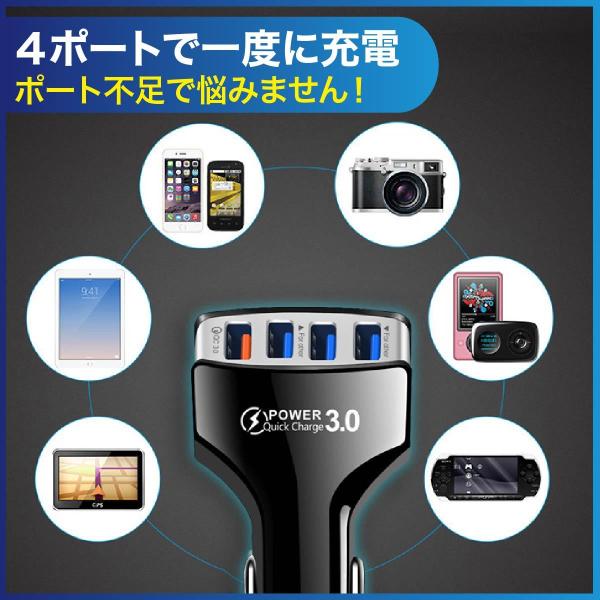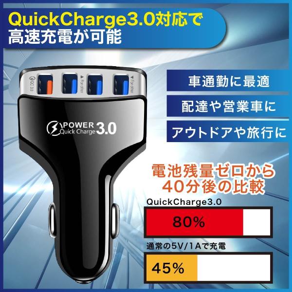 シガーソケット 4口 急速 高速 QC3.0 スマホ Android iPhone