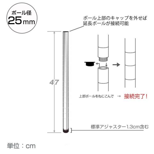 スチールラック パーツ ルミナス ラック ポール 基本ポール 2本セット 高さ47cm 25mm 25P050-2