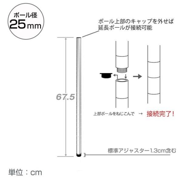 スチールラック パーツ ルミナス ラック ポール 基本ポール 1本 高さ67.5cm 25mm 25P070