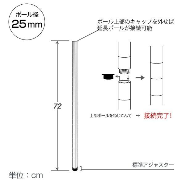 スチールラック パーツ ポール 2本セット 高さ72cm 25mm ルミナス ラック 基本ポール 25P075-2