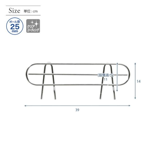 スチールシェルフ(棚)の側面に差し込んで取り付ける、収納物のこぼれ防止用のパーツです。ルミナス luminous スチールラック ラック スチール製 25mm /落下防止柵 奥行/横幅46タイプ用 (幅39×設置高さ11cm) 25SB045