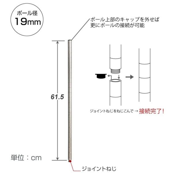 お使いのラックの収納力をアップする取り付け用ジョイント付き延長用継ぎ足しポールです。ルミナス luminous スチールラック ラック スチール製 19mm /継ぎ足し用ポール 延長ポール 高さ60cm延長/4本セット ADD-1960-2