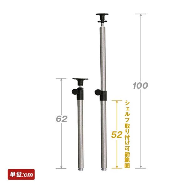 スチールラック パーツ ルミナス 延長突っ張りポール 長さ62〜100cm 4本 19mm ADD-1960J-2