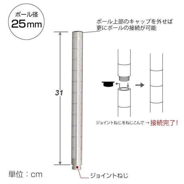 延長ポール 2本セット ポール径25mm 高さ31cm スチールラック ルミナス ADD-P2530