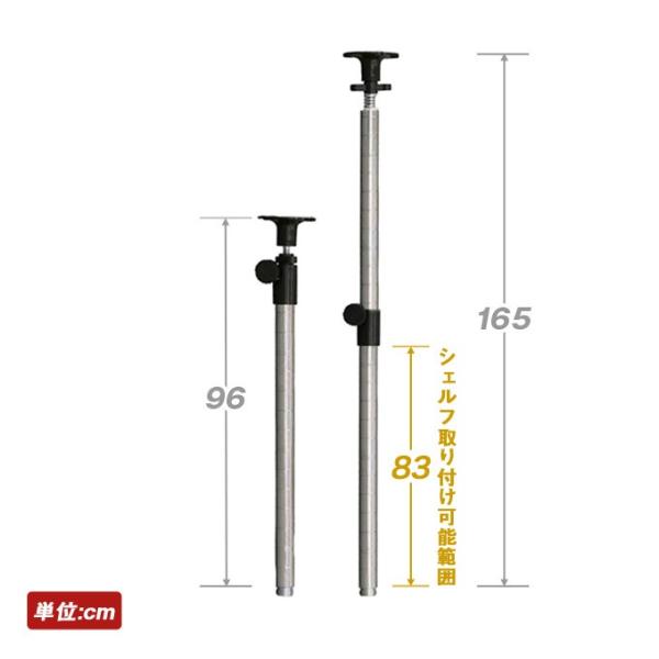 尚、ライン(溝)があるところまでは、シェルフやパーツの取付けができます。ルミナス luminous スチールラック ラック スチール製 【径25mm 】 ★継ぎ足し用突っ張りポール 高さ96〜165cm延長/2本セット ADD-P2590J