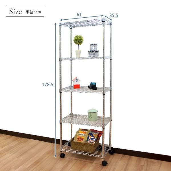 予約販売(4月上旬出荷予定) スチールラック 幅60 奥行35 5段 ラック 棚 スチール スリム キッチンラック ルミナス キャスター シェルフ EF25-60185