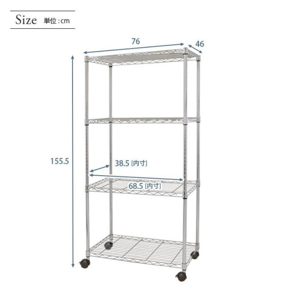 スチールラック 幅76 奥行46 4段 ラック 棚 スチール スリム ルミナス キッチン メタル 収納 アルミ シルバー EL25-76154