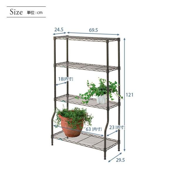 スチールラック ルミナス ガーデンラック 屋外用 棚 植物 ガーデニング 幅70 奥行30 高さ120 4段 GR7012BD-4
