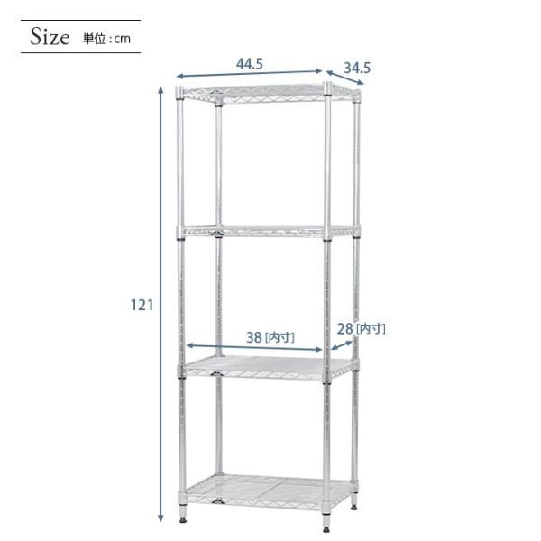 スチールラック 幅45 奥行35 高さ120 4段 ルミナスライト スリム 隙間収納 すき間 キッチン シルバーラック IHT4512-4