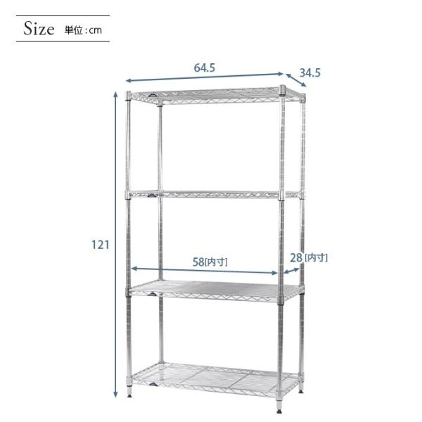 スチールラック 幅65 奥行35 高さ120 4段 ルミナスライト スリム 隙間収納 すき間 キッチン シルバーラック IHT6512-4