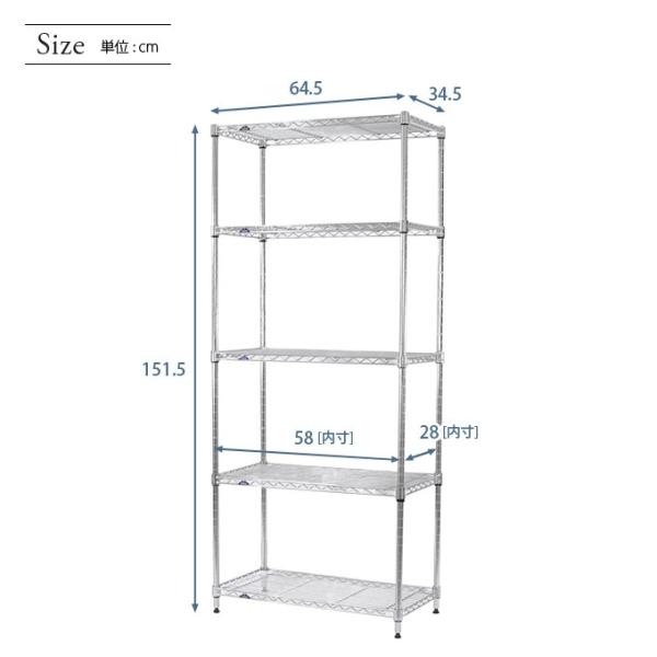 ■サイズは約 幅64.5×奥行34.5×高さ151.5cm/棚耐荷重150kg 整理収納に最適。