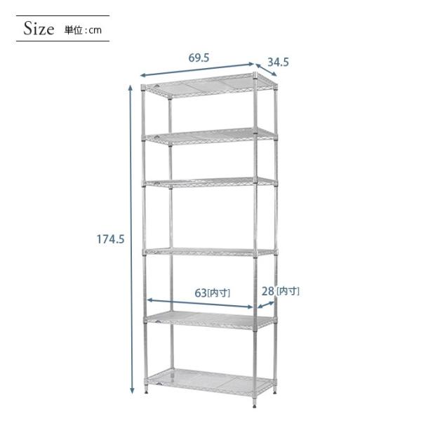 スチールラック 幅70 奥行35 高さ175 6段 ルミナスライト アルミ ラック スリム 隙間収納 すき間 キッチン シルバーラック IHT7018-6