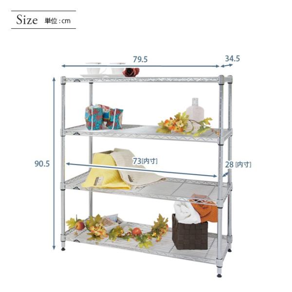 スチールラック 幅80 奥行35 高さ90 4段 ルミナスライト スリム 隙間収納 すき間 キッチン シルバーラック IHT8090-4