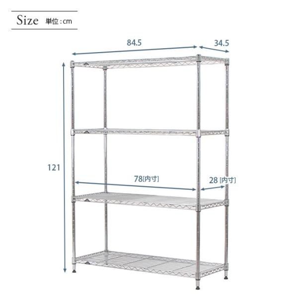 スチールラック 幅85 奥行35 高さ120 4段 ルミナスライト スリム 隙間収納 すき間 キッチン シルバーラック IHT8512-4