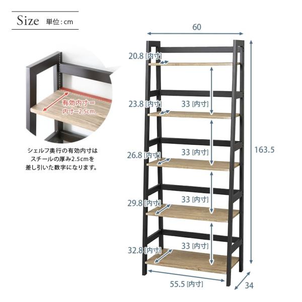 棚 収納 インテリアシェルフベルーモ 5段 幅60 奥行34 ( 奥行35 ) 高さ163cm 木製シェルフ ISB6016-5