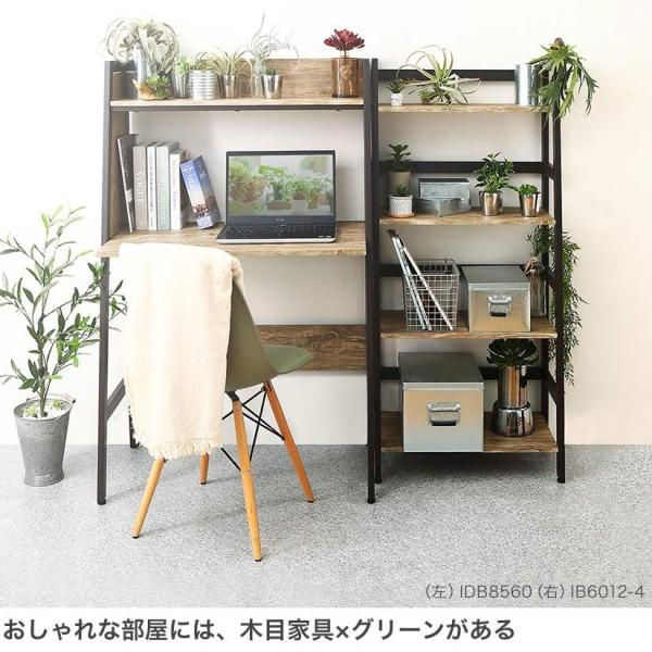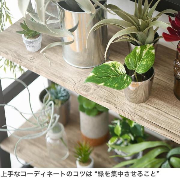 コーディネートのポイントは『緑を集中させて置くこと』!木目柄の棚と上手に調和しボタニカルな空間になります。