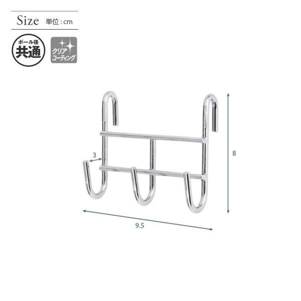 ルミナス luminous スチールラック ラック スチール製 25mm 19mm ポール共通3連フック(幅9.5×奥行3×高さ8cm) KP-3F