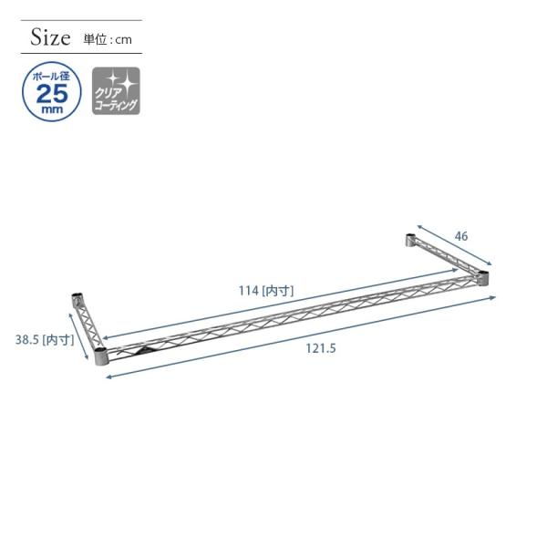 スチールラック ルミナス ラック パーツ コの字バー 幅120 奥行46 (25mm) 補強 25KWB1245SL 25KWB1245