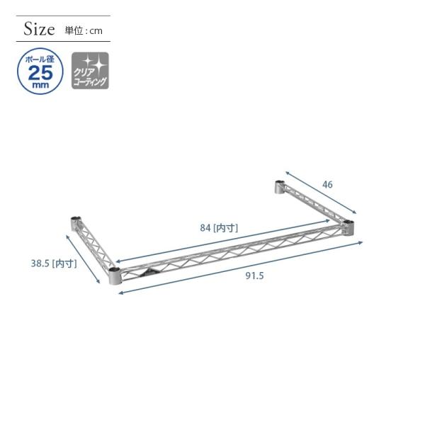 スチールラック ルミナス ラック パーツ コの字バー 幅90 奥行46 (25mm) 補強 luminous 25KWB9045