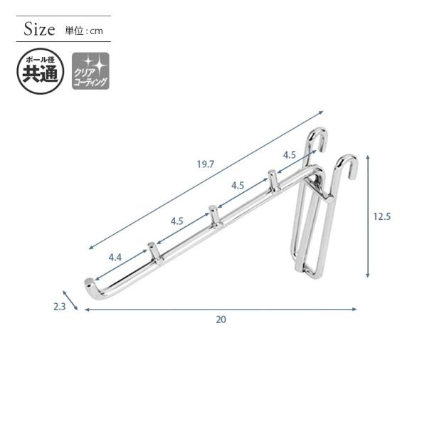 ルミナス ラック ハンガーラック (25mm) (19mm) ポール共通 傾斜ハンガー長さ20cm LSK-H20