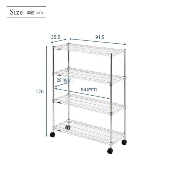 スチールラック 幅90 奥行35 高さ125 4段 業務用 ラック A4 ルミナス レギュラー キャスター付 収納 頑丈 アイアン NLF9012-4