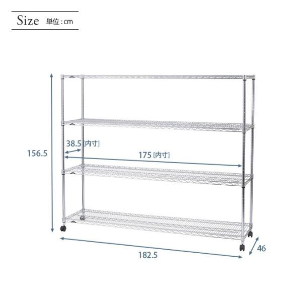 スチールラック 業務用 ルミナス 幅180 奥行46 4段 棚 ルミナスレギュラー シルバーラック キャスター付 収納 頑丈 NLH1815-4
