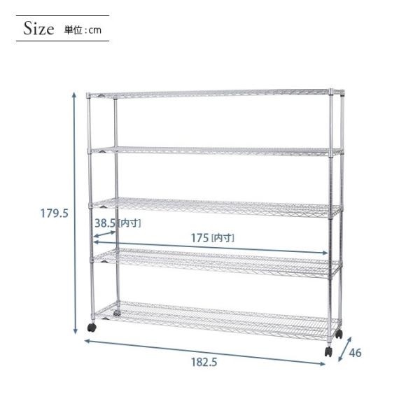 スチールラック 業務用 ルミナス 幅180 奥行46 5段 棚 ルミナスレギュラー シルバーラック キャスター付 収納 頑丈 NLH1818-5