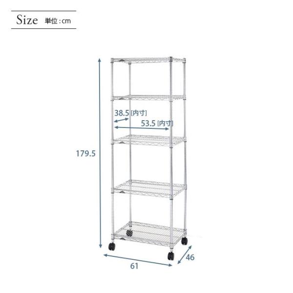 スチールラック 業務用 ルミナス 幅60 奥行45 高さ180 5段 ルミナス レギュラー キャスター付 収納 頑丈 NLH6018-5