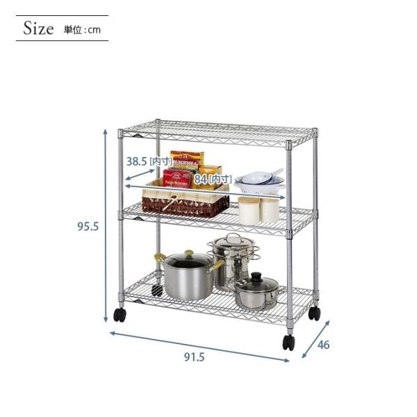 スチールラック 幅90 奥行46 高さ95 3段 業務用 ルミナス ルミナス レギュラー シルバーラック キャスター付 収納 頑丈 NLH9090-3