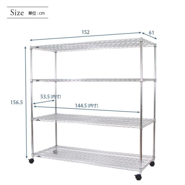 ■サイズは約 幅150 奥行60 4段 /棚耐荷重250kg 抜群の整理収納スペースと対荷重。