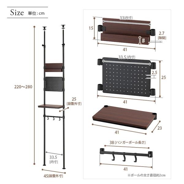 ■つっぱりポールが床から天井まで突っ張る[幅45 高さ220〜280cm ]スチールラックです。