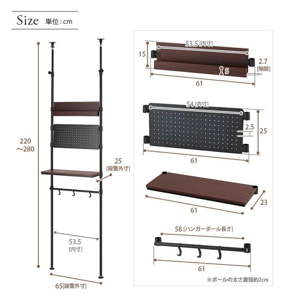 ■つっぱりポールが床から天井まで突っ張る[幅65 高さ220〜280cm]スチールラックです。