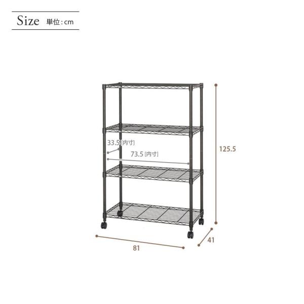 スチールラック 黒 幅80 奥行40 4段 ルミナスノワール キャスター シェルフ キッチン レンジ 省スペース ゴミ箱 NO8012-4