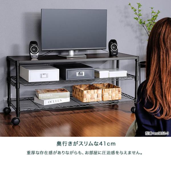 ルミナスノワール ローボード 黒 おしゃれ ブラック テレビ台 テレビラック キャスター付き スチールラック おしゃれ 幅80 3段 NO8052-3 Luminous