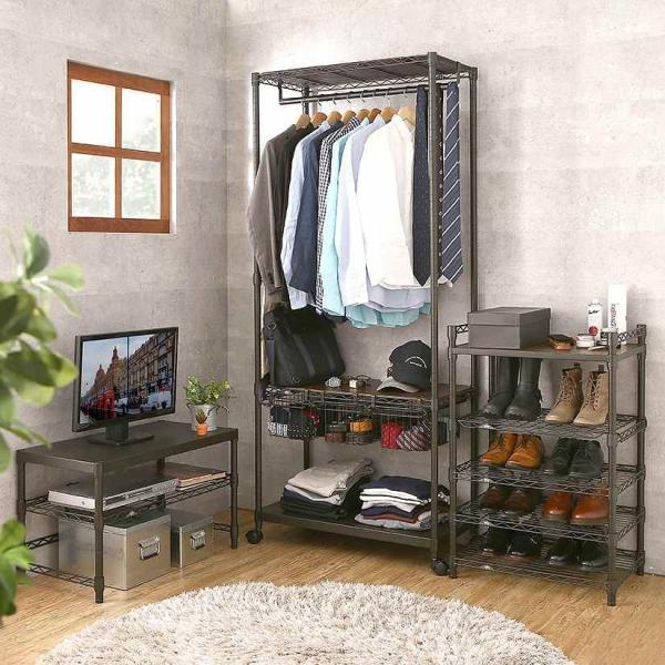 ハンガーラック スチールラック ルミナス 幅90 奥行46 高さ180 3段 衣類収納 ワードローブ EL25-90183