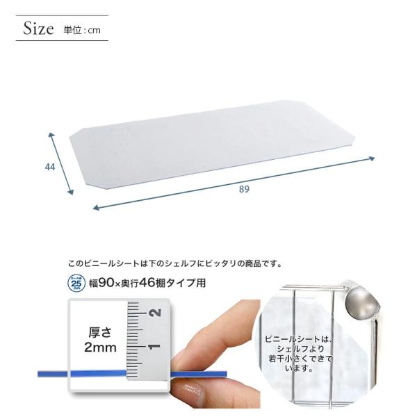 スチールシェルフ(棚)の棚面のワイヤーの隙間から、小物の落下を防止したり、置時計やAV機器などの脚の落込みを防ぎます。光をさえぎることがないので、人気の高いシートです。ルミナス luminous 収納家具 スチールラック ラック スチール製 25mm /幅91x奥行46cm棚用 ビニールシート幅90用 OPS-9045V