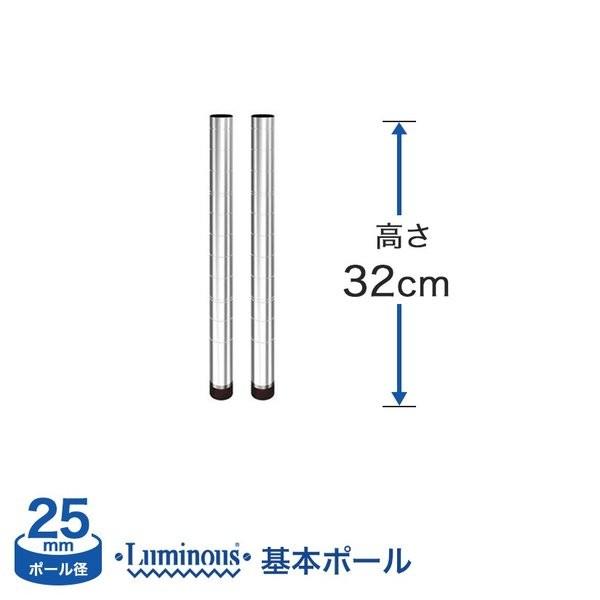 スチールラック パーツ ルミナス ラック ポール 基本ポール 長さ 32cm 2本セット 25mm 25P030-2
