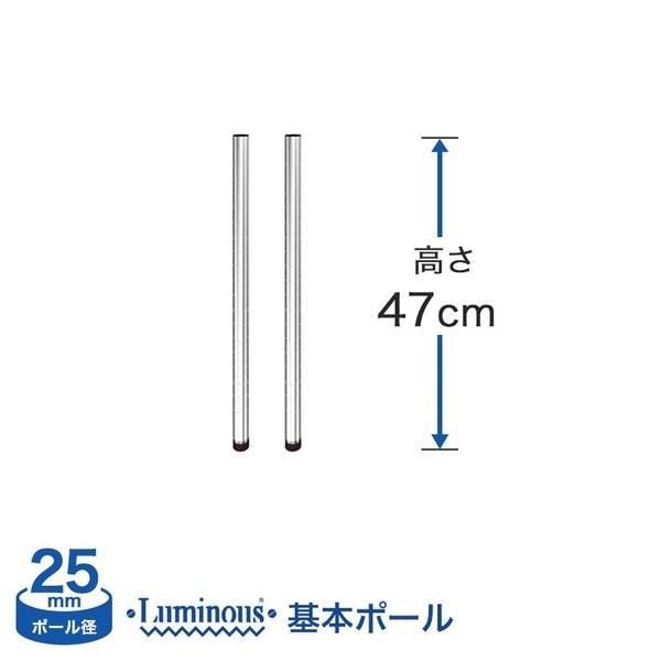 スチールラック パーツ ルミナスノワール ポール 長さ47cm 2本セット 黒 基本ポール おしゃれ ブラック NOP-050SL