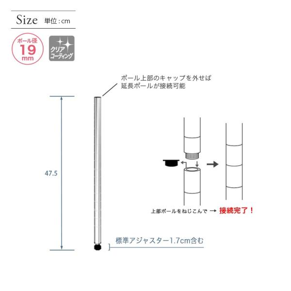 ルミナス luminous スチールラック ラック スチール製 19mm /高さ47.5cm基本ポール2本組 PHT-0046SL
